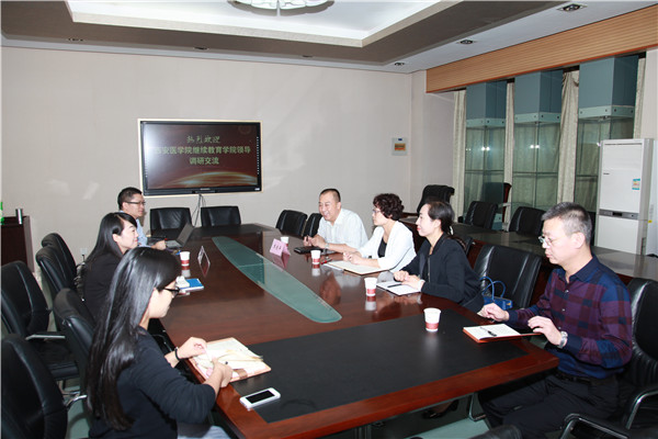 9月28日下午,西安医学院继续教育学院院长焦东平一行4人来访我院,与我院就慕课建设及网络教育工作进行交流。我院副院长白浩及相关部门负责人参加座谈会。