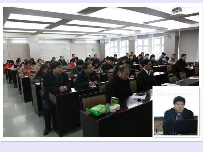 11月1日下午,远程教育学院教工党支部和公安处党支部在崇鋈楼思齐堂联合进行“两学一做”学习教育,开展“结对共建 同上一堂党课”活动。远程教育学院四个教工党支部、公安处党支部全体党员参加学习。远程教育学院党总支书记于伦主持学习活动。 于伦对当前学校深入推进“两学一做”工作进行了介绍,提出了远程教育学院下一阶段开展学习教育的要求。他与大家分享了自己的学习体会,提出了“两学一做”“学什么,做什么,怎么做”的问题思考。认为做一名合格党员应当做到,做为人民服务的排头兵,做党的形象代言人,做有政治意识、大局意识、核心意识、看齐意识的优秀共产党员;要带头遵规守纪做表率,要有一片为民的诚心,要做先进文化的引领者,要通过不断学习培养根植于内心的良好修养,要有符合党员标准的行为自觉和为他人着想的善良情怀。他指出,通过“结对共建”希望两单位共同推进“两学一做”学习教育,达到共促共建工作目标。 随后,远程教育学院第二党支部书记刘天才老师做了《不忘初心