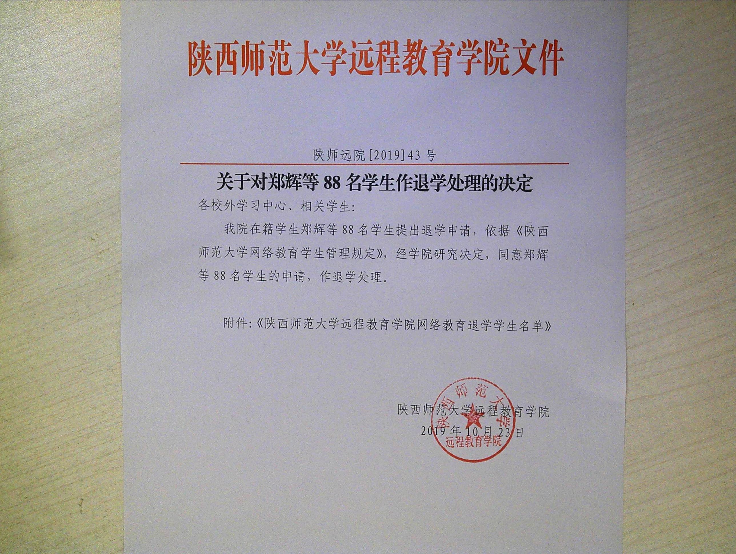 关于对郑辉等88名学生作退学处理的决定