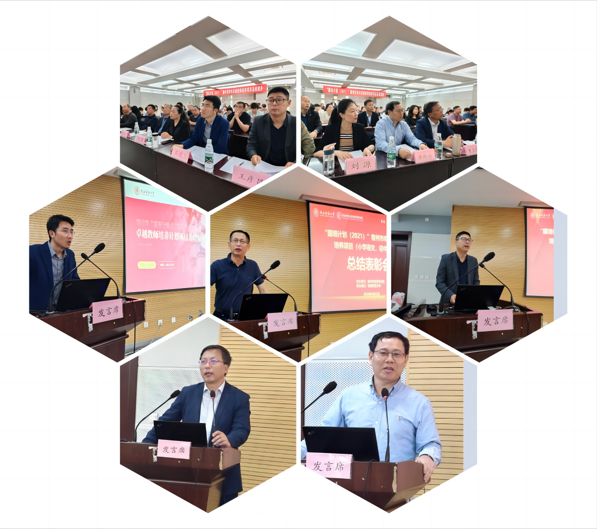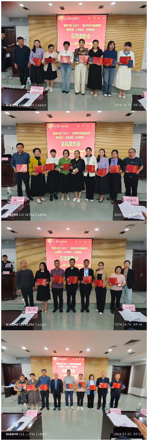 2024 年 4 月 25 日上午,“国培计划(2021)”——宿州市中小学农村卓越教师培养项目(小学语文、初中数学)总结表彰大会在陕西师范大学雁塔校区崇鋈楼二层闻道堂顺利举行,学院书记刘建军、首席专家罗新兵、贺卫东和项目县教育体育局领导一行8人出席了汇报会。学院副院长王彦昌主持会议。 刘书记致欢迎词,并真诚地祝贺84位参训教师通过培训所取得的成果,希望大家能秉承卓越教师的身份,以教育家精神为追求,为宿州的基础教育“提质”行动贡献力量。 首席专家从培养目标出发,结合学科要求,总结了培训整体设计思路,并指出后续参训教师结合教革方向成就个人专业成长的希望与方法。 张建飞主任代表项目组,做项目总结汇报。 项目县领导代表,分别宣读优秀学员奖、优秀成果奖、优秀课例资源建设奖表彰通知,并向王云莉等 25 位优秀教师颁发证书及奖品。 附件一:宿州市“国培计划(2021)”——卓越教师培养项目总结会会议安排 附件二:关于表彰王云莉等 25 位参训教师的通知 |