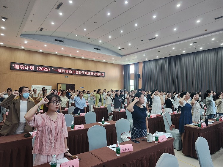 9月22日,由海南省教育研究培训院主办、陕西师范大学承办的 “国培计划(2025)”—— 海南省幼儿园骨干班主任培训班,在海口市正式拉开帷幕。海南省教育研究培训院副院长符明、陕西师范大学远程教育学院党总支书记刘建军、副院长王彦昌,以及来自海南省各市县的 200 名幼儿园骨干班主任、项目组相关人员出席开班仪式,仪式由王彦昌副院长主持。 开班仪式前,与会人员共同参与“海南省教师师德师风公开承诺宣誓”活动。全体教师高举右拳、郑重宣誓,誓言铿锵有力:将牢记“为党育人、为国育才”的初心使命,坚决落实“立德树人”根本任务,树立“躬耕教坛,强国有我”的远大志向和抱负,以饱满的热情和坚定的信念,为新时代海南基础教育事业高质量发展贡献青春力量。 仪式现场,刘建军书记首先介绍了陕西师范大学的办学特色与学科优势。作为教育部直属 “双一流”建设高校,学校八十余年来始终坚守“扎根西部、服务教育”为使命,在教师教育领域深耕细作,积淀了“教育报国、追求卓越”的深厚办学传统。针对此次培训,学校充分发挥自身扎实的教师教育底蕴,结合现代信息技术优势,创新打造“精准靶向、数字赋能、双线融合”的立体化培训体系,并精心设计了系列核心课程模块。刘书记表示,期待通过此次培训,助力参训教师实现从“知识传授者”到“成长引导者”的关键角色转变,为海南自贸港建设、教育强省建设以及学前教育事业发展注入新活力。 随后,符明副院长结合海南学前教育发展的实际需求发表讲话。她指出,提升学前教育办学质量,核心在于每一位幼教工作者及时更新教育理念、持续提升专业能力与业务水平。她对参训教师提出两点殷切期望:一是珍惜此次难得的交流互动机会,带着日常工作中的实际问题与深度思考参与培训,在巩固现有工作优势的基础上,锚定更高层次的发展目标,以更专业的能力为幼儿健康成长筑牢基础;二是要以此次培训为重要契机,进一步拓宽教育视野,紧密结合海南学前教育的实际情况,积极探索发展新路径、构建育人新模式,为海南学前教育高质量发展贡献力量,为自贸港建设注入坚实的教育动能。 琼海市教育幼儿园陈韵汝老师作为学员代表发言。她代表全体参训教师表态:将倍加珍惜此次研修机会,通过系统性学习提升自身专业素养,努力成长为更优秀的幼儿园班主任;同时,将与各位同仁携手奋进,以爱与责任为孩子们打造充满欢乐与成长的童年乐园,共同书写海南幼儿教育事业的崭新篇章。 据悉,本次培训为期7天,以“提升骨干班主任高质量保教工作能力与班级管理能力”为核心目标。课程内容紧密聚焦学前教育实践需求,涵盖“幼儿园智能化班级管理”“幼儿园自主游戏观察与分析”“幼儿良好阅读习惯培养”“构建优质师幼关系”“促进家园协同共育”“智能技术赋能保育教育工作”等关键领域。培训全程坚持 “学以致用、学用结合”导向,不仅为海南省幼儿园骨干班主任搭建起专业提升的优质平台,更将通过参训教师的实践转化与辐射带动作用,推动先进教育理念与科学管理方法在海南落地生根,为当地学前教育事业发展提供有力支撑。 (供稿:培训部) |